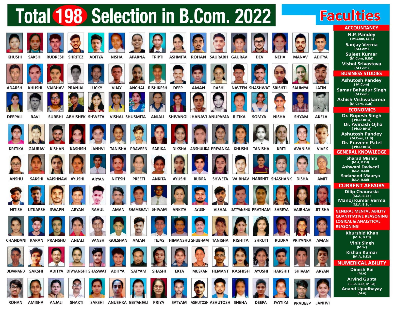 वर्ष 2020 में संकल्प ट्यूटोरियल्स में कोचिंग करने वाले कुल 179 विद्यार्थियों ने BHU-B.Com. प्रवेश परीक्षा में सफलता प्राप्त किया। संस्था के कुल 4 विद्यार्थियों ने BHU-B.Com. के टॉप- 10 में अपना नाम दर्ज करके संस्था को गौरवांवित किया। संस्था की छात्र विनीत अग्रवाल ने BHU-B.Com. में दूसरा स्थान प्राप्त कर संस्था का नाम गौरवान्वित किया है। इसके अतिरिक्त रिषभ जैन ने 5वॉ, अभिज्ञा भारद्वाज ने 7वॉ, प्रवेश कुमार ने 8वॉ स्थान और प्राप्त कर संस्था को गौरवान्वित किया।